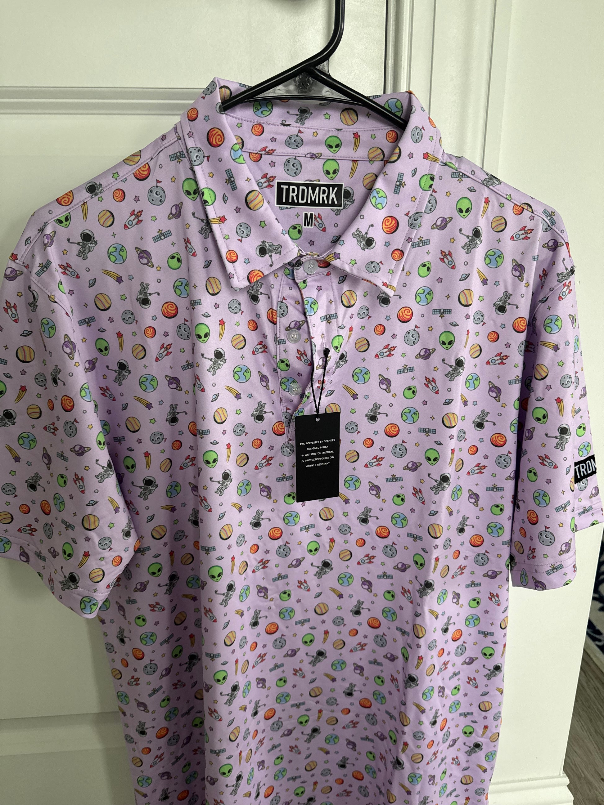 Astrogolf was designed with an appreciation for outer space. With an astronaut, alien, rocket ship, and more, this polo will take you to the moon!